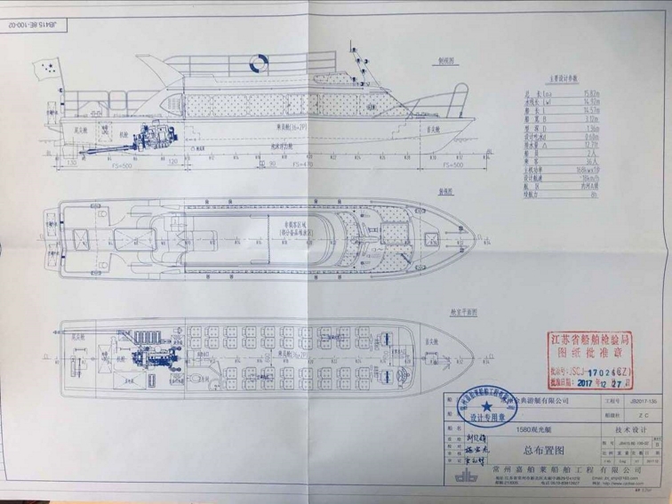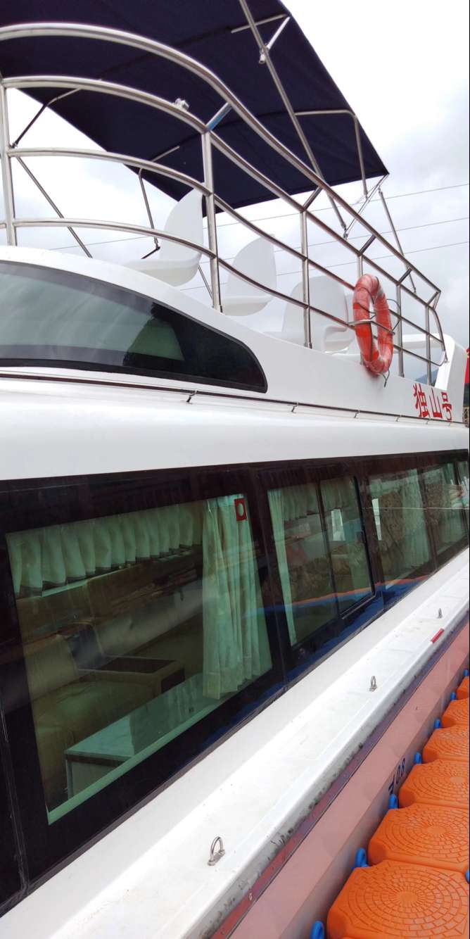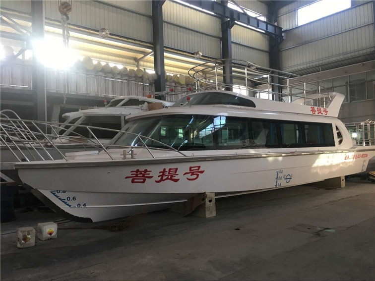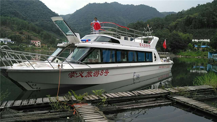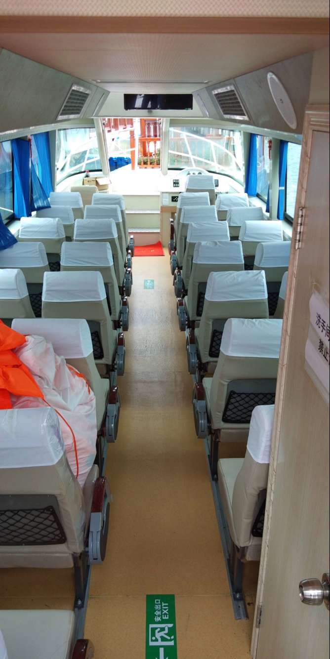 公司自行設計開發(fā)的多功能高速客船,單層主甲板,二層觀光甲板,全艇玻璃鋼建造,單體,高速排水型艇型,柴油機驅動,適用于內(nèi)河、湖泊的交通運輸,旅游觀光接待,行政巡邏執(zhí)法等任務。